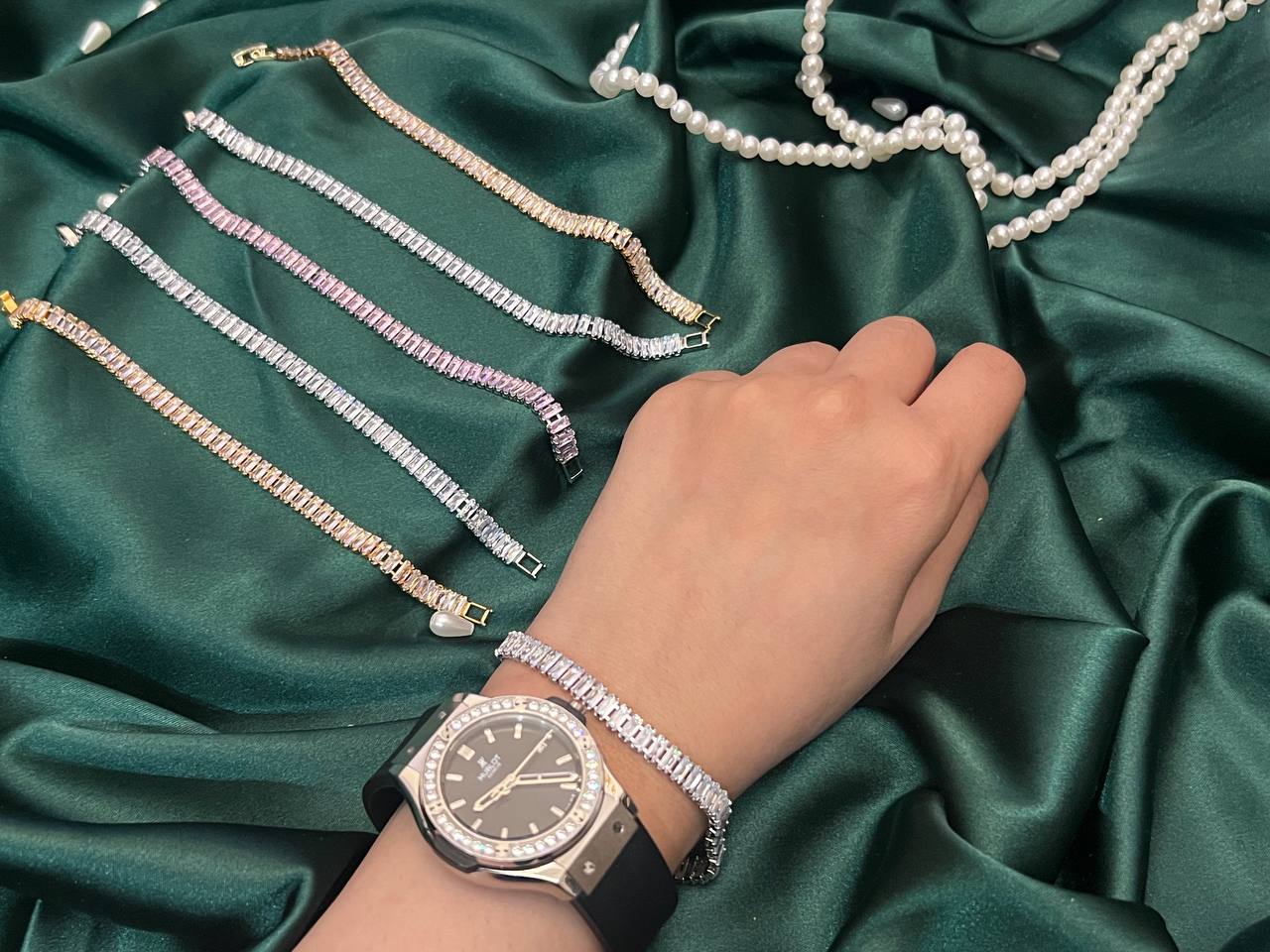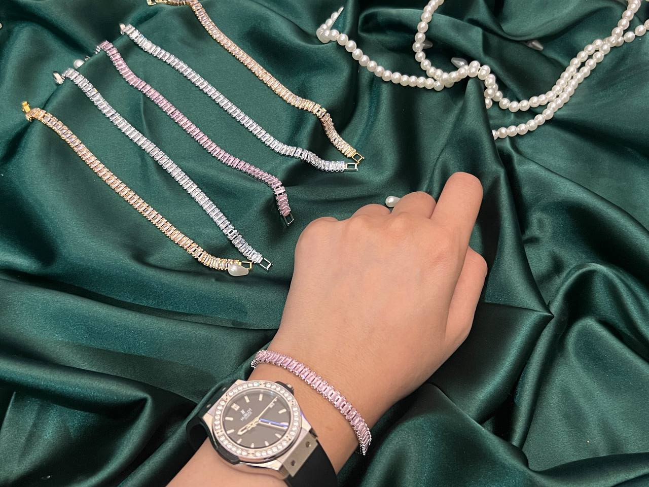 این مدل با درخشندگی بسیار بالا و طراحی سنگکار شده، جلوهای شیک و چشمگیر ایجاد میکند. سنگها از نوع تنیسی بوده و با ظرافت کامل کار شدهاند؛ به همین دلیل نگینها ریزش ندارند و دوام بالایی دارند.ساختهشده از استیل درجهیک با رنگ ثابت و کاملاً ضدحساسیت، مناسب استفادهی روزانه و همچنین مهمانیها است. ترکیب زیبایی، کیفیت و ماندگاری این محصول را به انتخابی خاص و محبوب تبدیل کرده است.